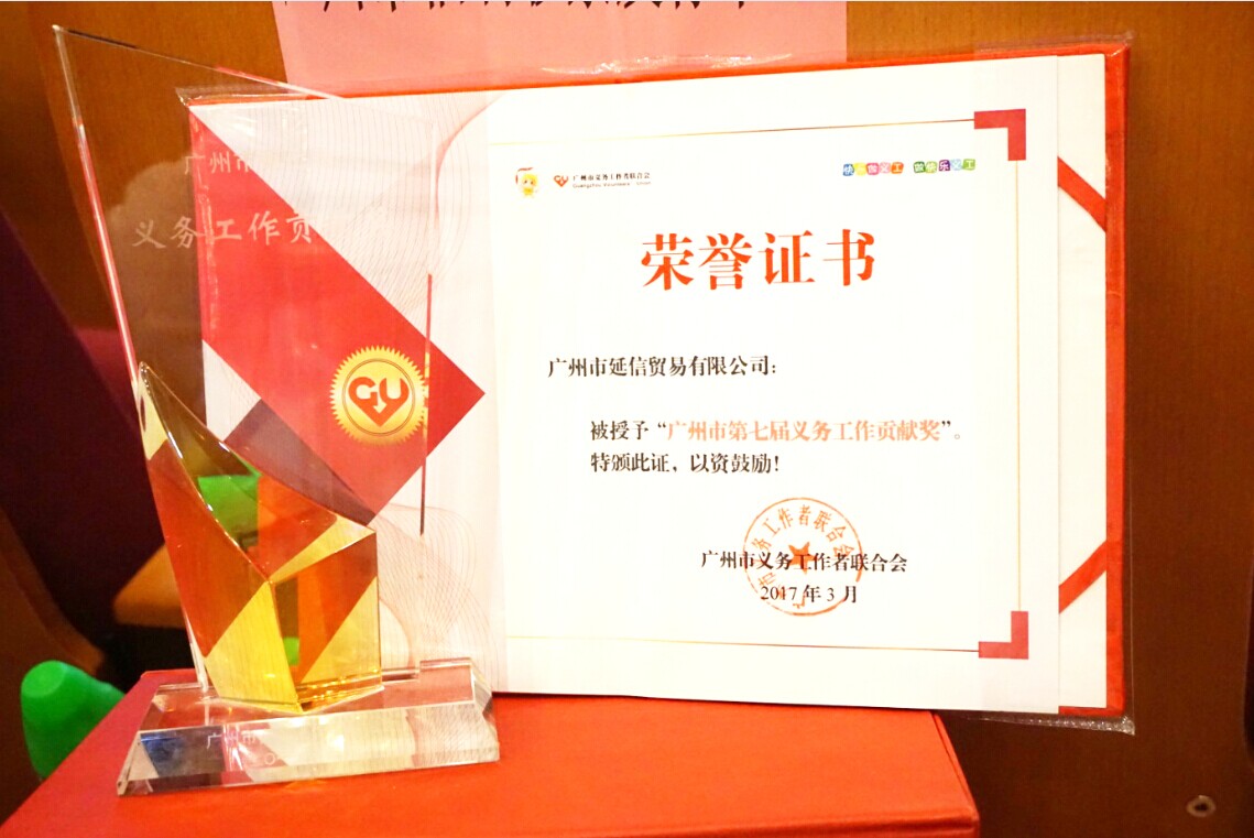 第七届优秀义工评选活动自去年12月启动以来,得到了全市义工组织和社会各界的积极响应,通过一系列的程序,评选出了广州市第七届义工之星10名、优秀义工管理者10名、优秀义工团队10个、优秀义工服务项目10个、义务工作贡献奖20个和优秀义工40名。我司有幸获得 “广州市第七届义务工作贡献奖”。